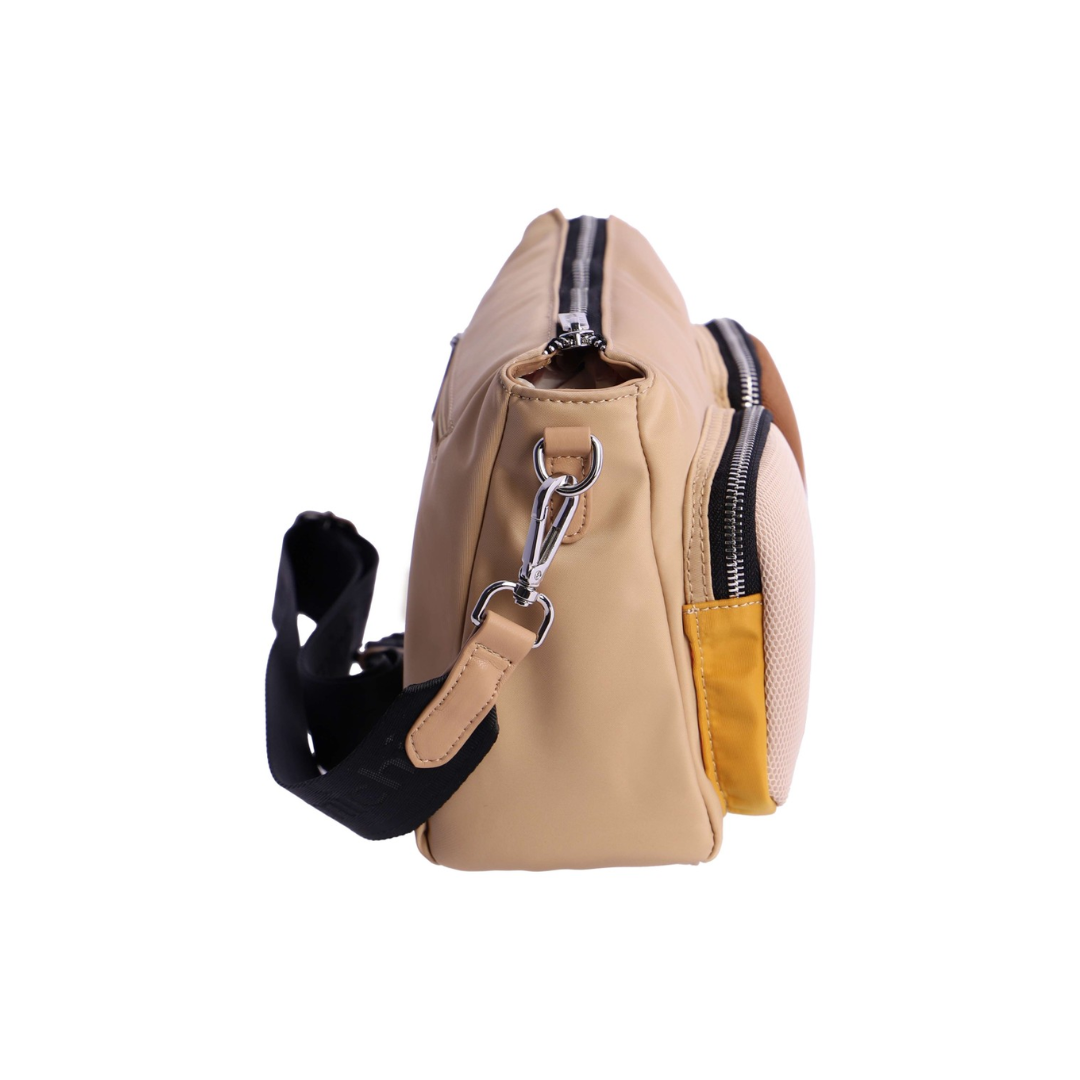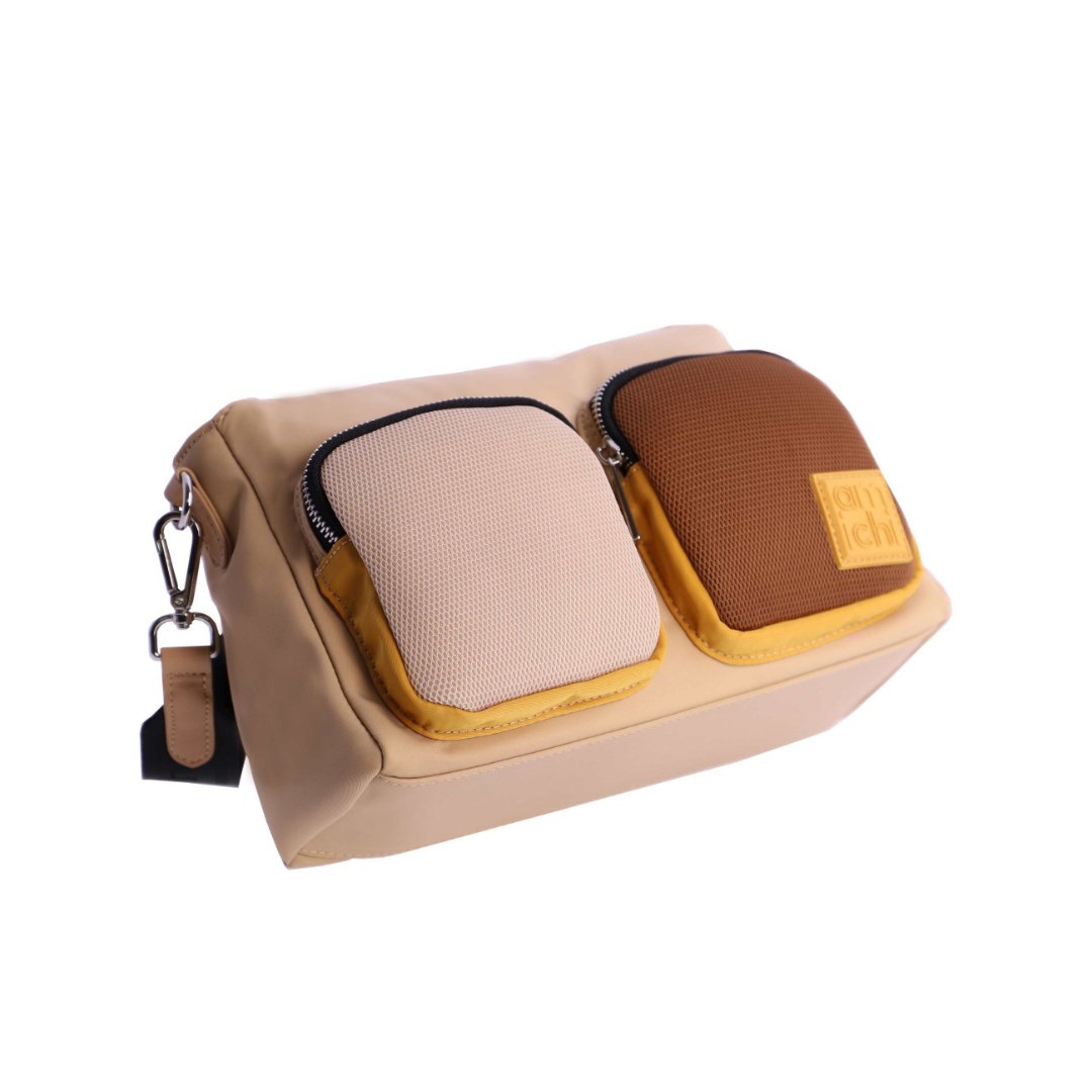 Bolso bandolera para mujer AMICHI Zaza de nylon, decorado con el logo en goma en la parte frontal. Lleva un asa de bandolera regulable y extraible en su interior de nylon con el logo grabado. Tiene cierre de cremallera con tirador metálico con logo, dispone de tres bolsillos interiores, dos delante y uno detrás con cremallera, más otro exterior detrás también con cremallera.