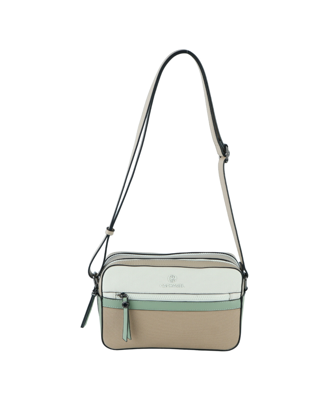 Bandolera de tamaño mediana con doble compartimento. Práctica y moderna, ideal para dar un toque chic a cualquier estilismo diario. Cierre en cremallera, tiradores personalizados y varios bolsillos en el interior. La parte delantera y trasera está personalizada con el nuevo print y charm del monograma en color dorado.
