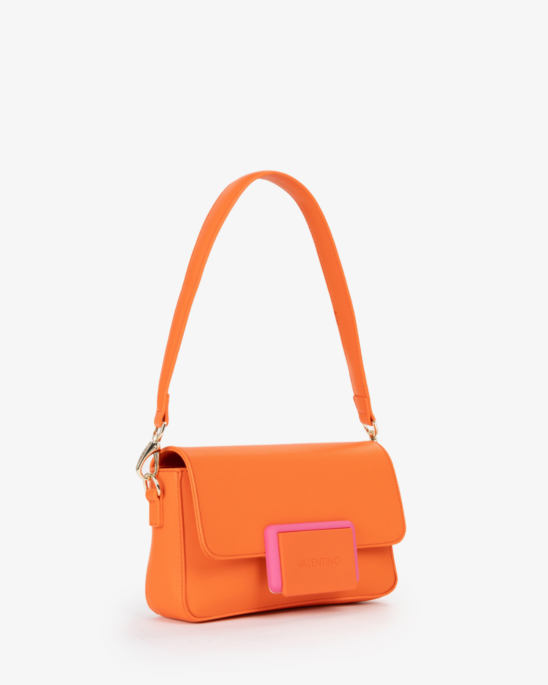 Bolso Valentino en color naranja, con bandolera para cruzar, una más corta para hombro y cadena de plástico decorativa o para colgar también. Modelo diferente y para cualquier ocasión.