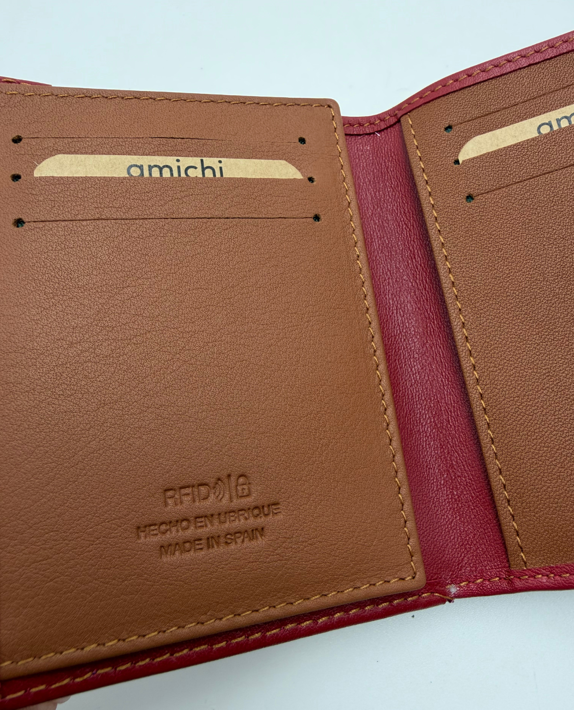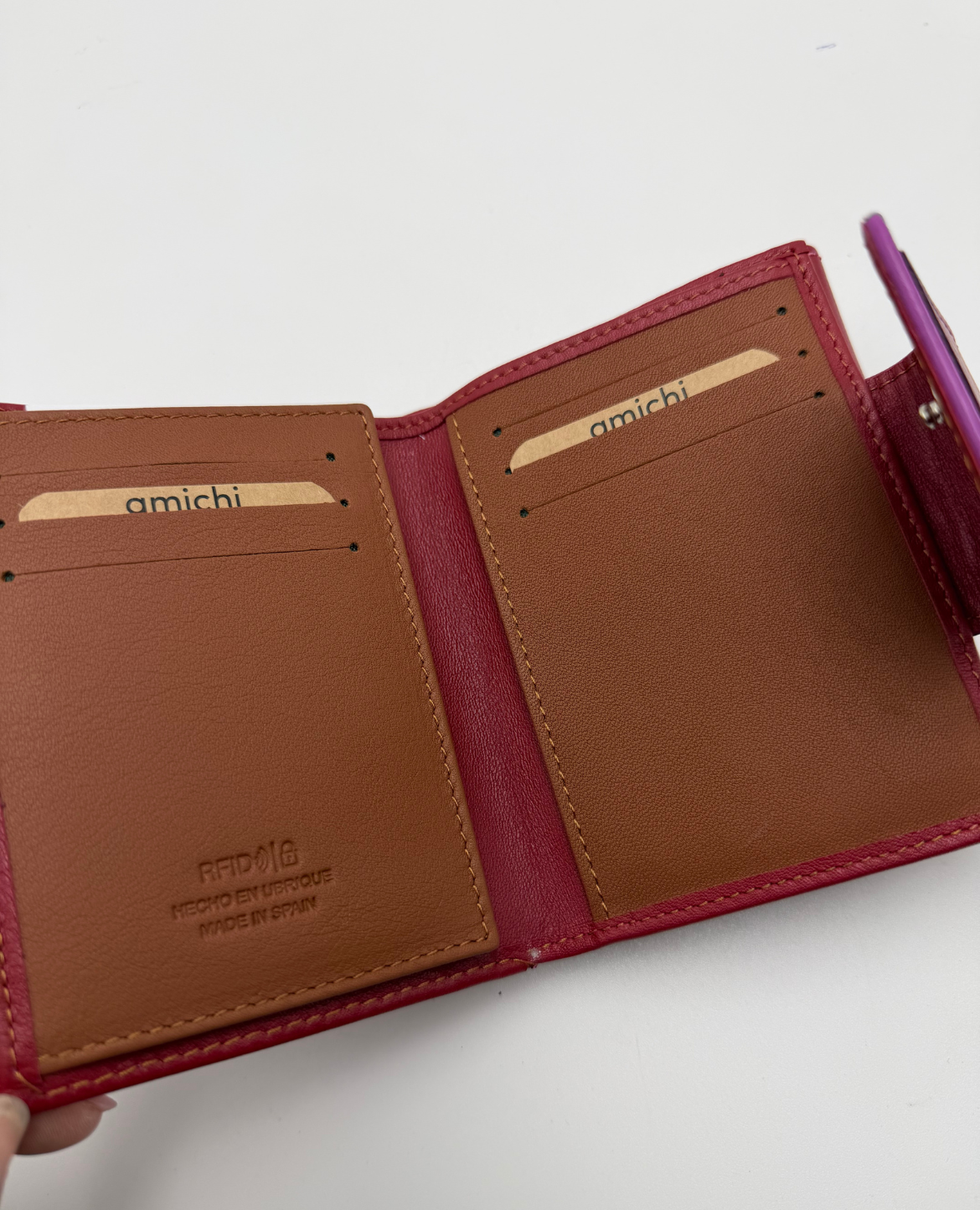 Monedero Billetero Amichi en tamaño pequeño, de piel legítima fabricado en Ubrique tanto exterior como interior.