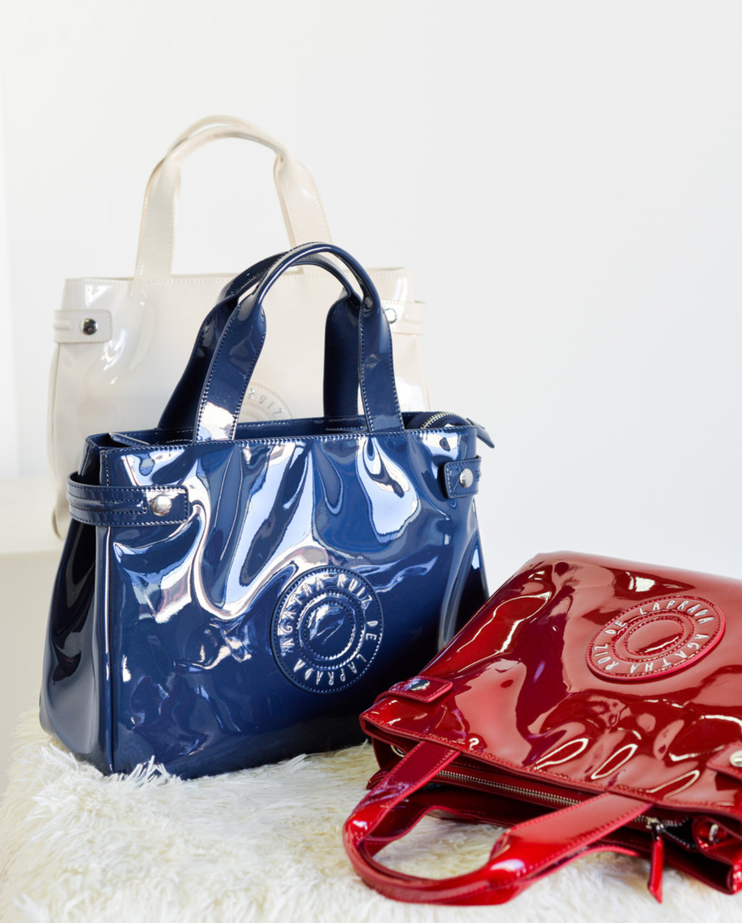 Bolso de formato tote diseñado en charol.