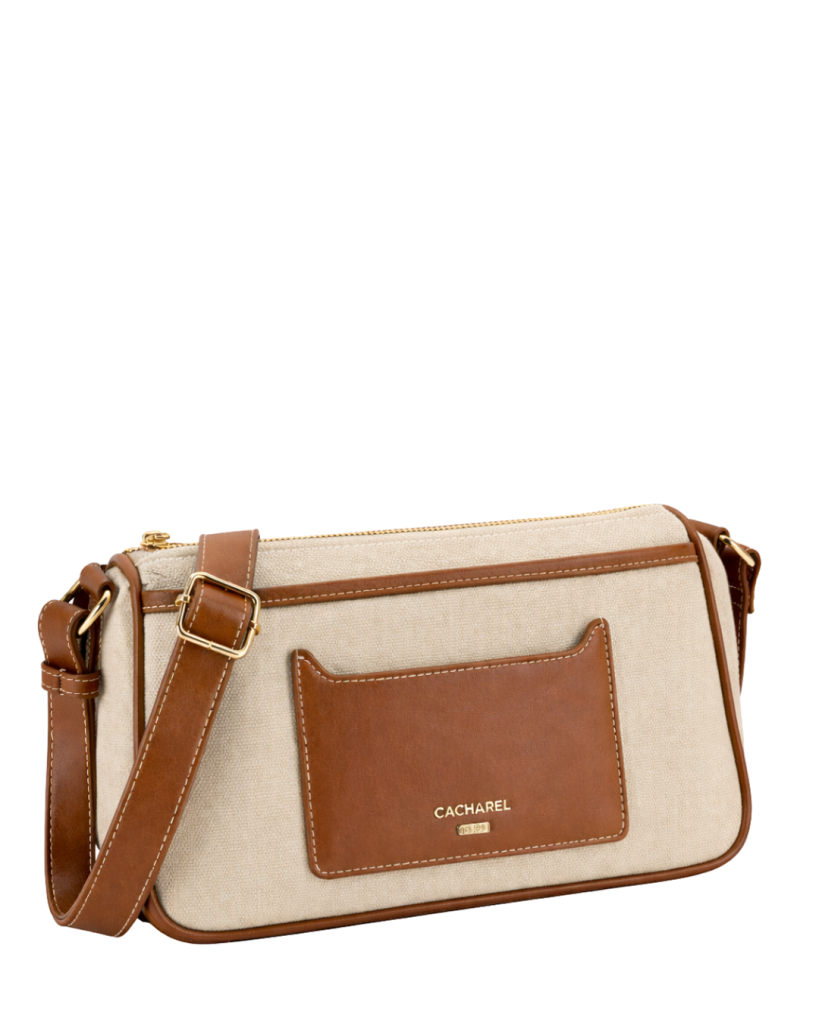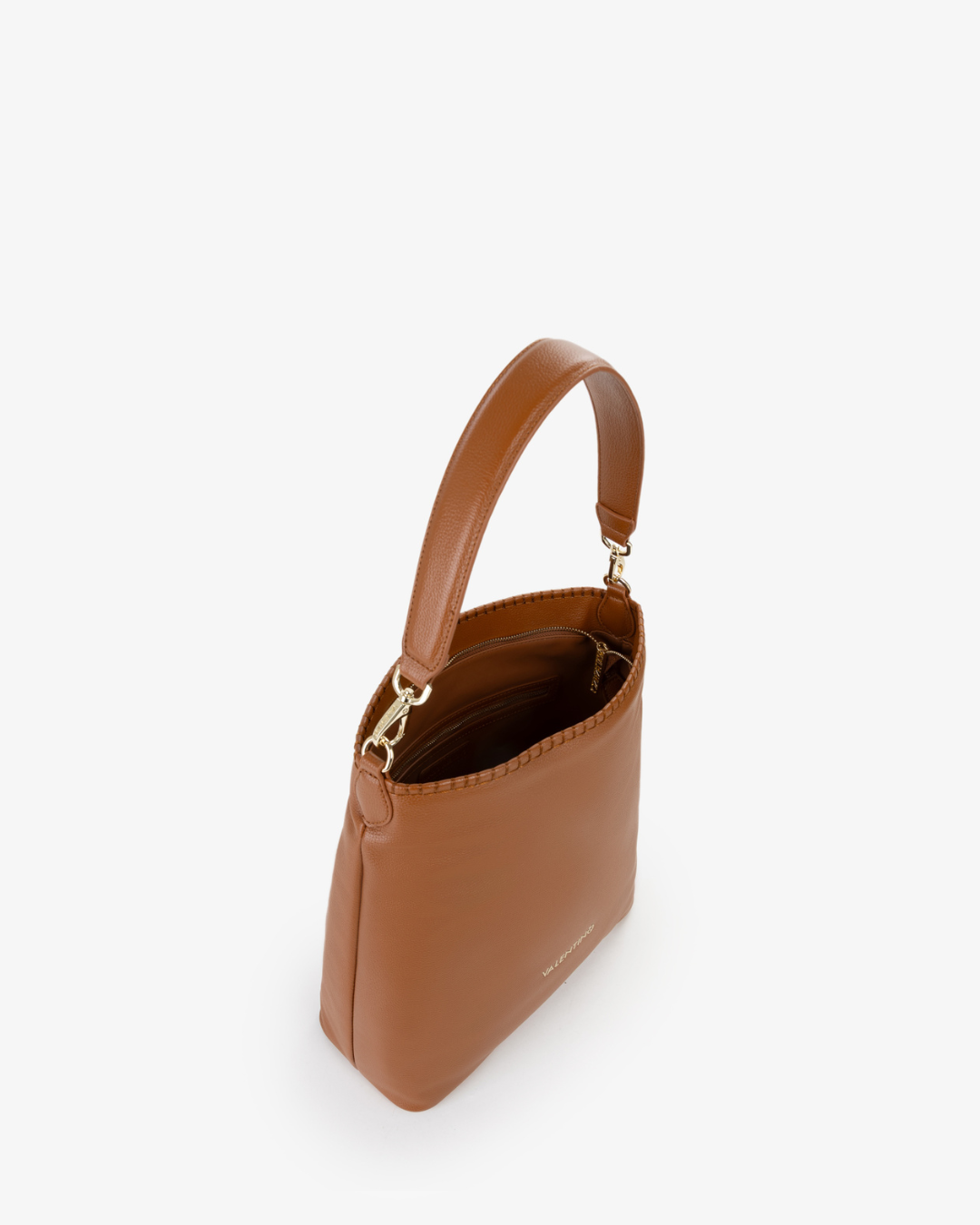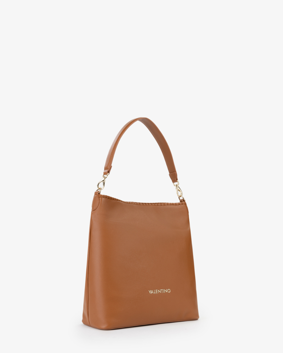 Bolso Valentino, con asa corta para hombro. También incluye una bandolera para cruzar con logo y de rejilla en color marrón.