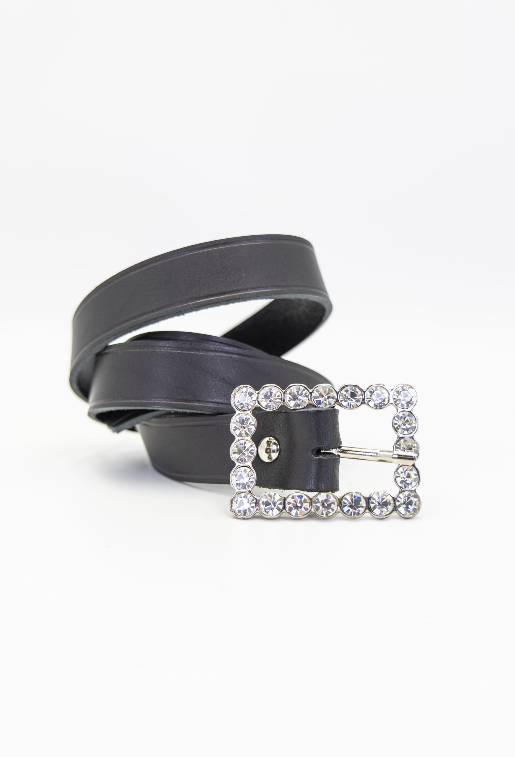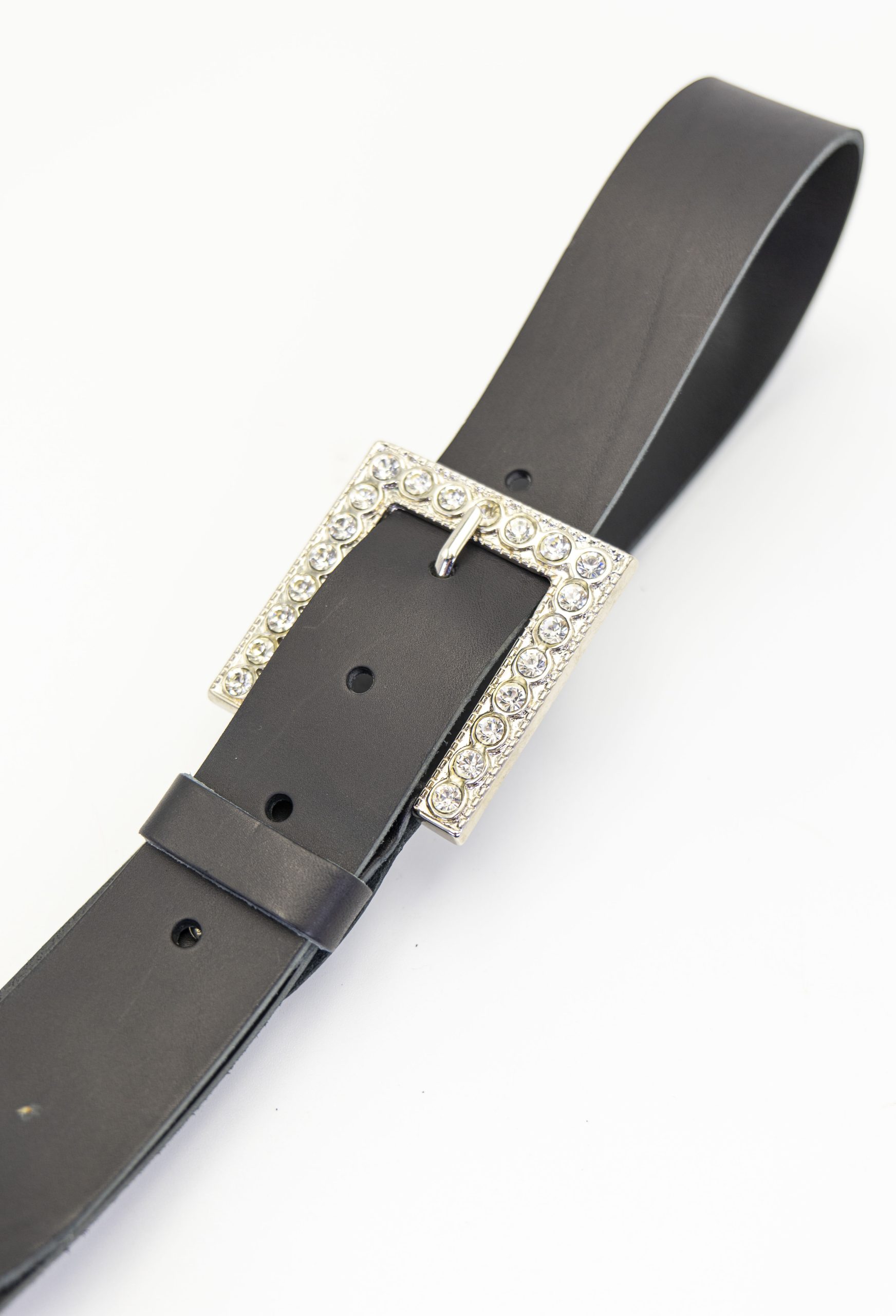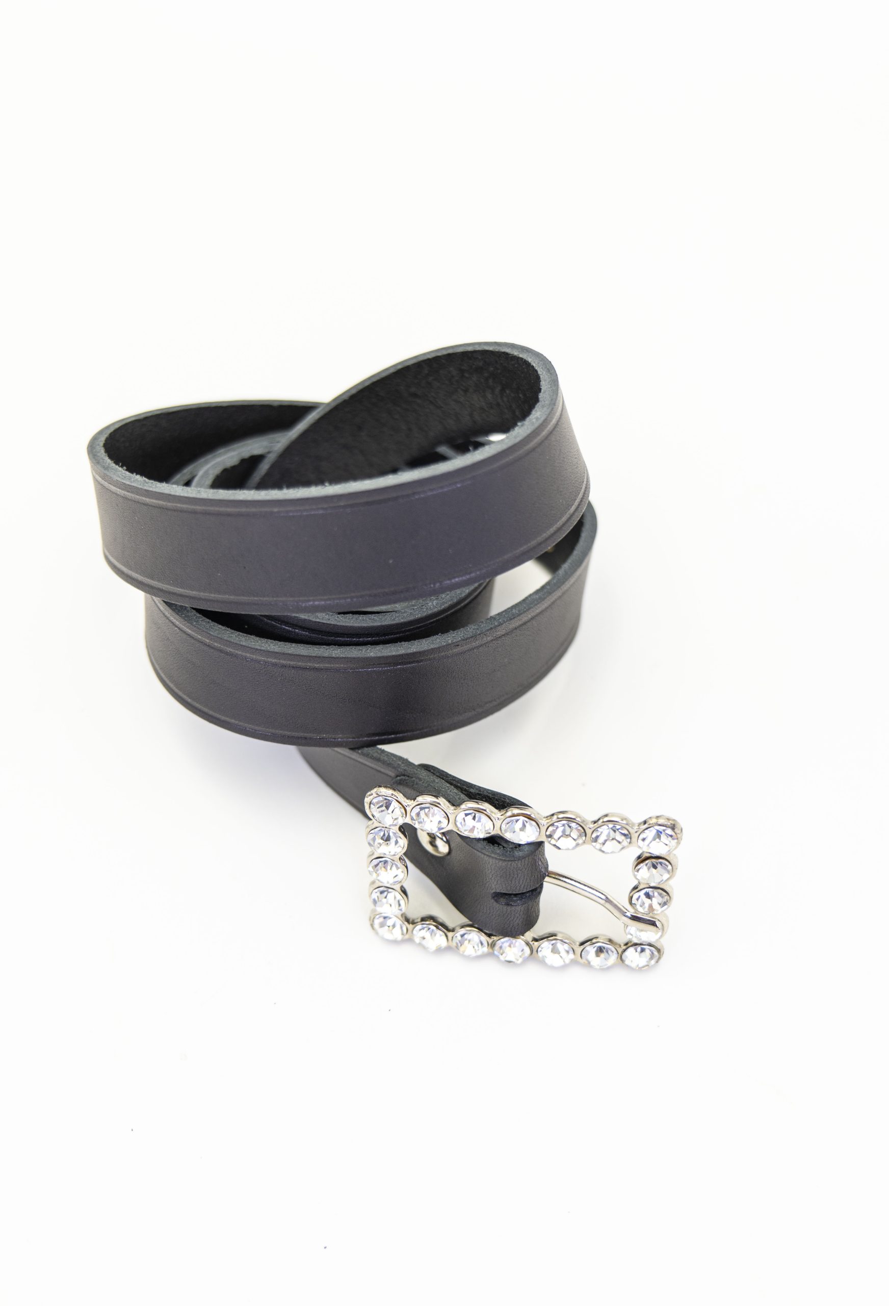 Elegante cinturón de piel para mujer. Su diseño refinado se destaca por una hebilla brillante que añade un toque de sofisticación y glamour, ideal para ocasiones especiales o para dar un toque chic a tus looks diarios.